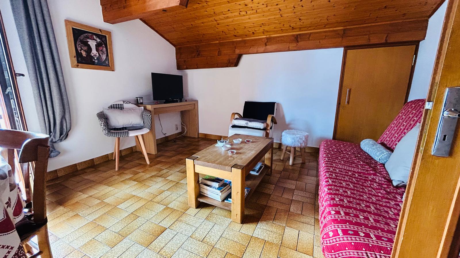 Surface d'environ 60 M2 + balcon avec une belle vue sur le Mont Blanc (voir photo sur la page d'accueil du site qui a été prise depuis le chalet)